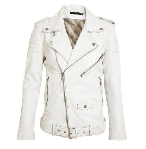 Women Fashion White Leather Jacket , Lambskin Biker Jacket For Women’s