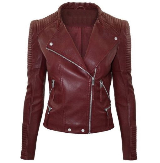 Women Maroon Color Leather Jacket Biker Stylish Zipper Fashion Jacket