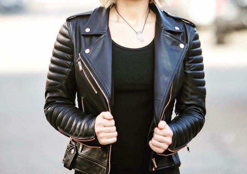 Women's Genuine Lambskin Black Leather Jacket Motorcycle Slim fit Jacket