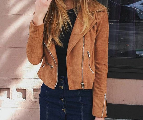 Women Biker Suede Leather Tan Brown Moto Jacket