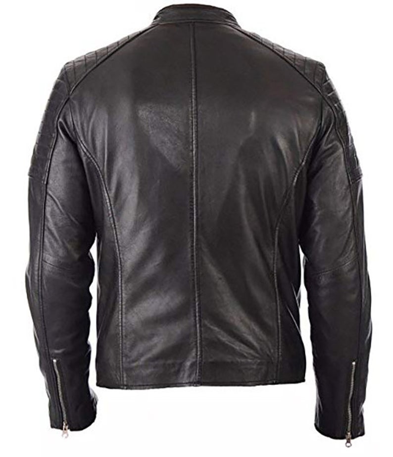 Mens Vintage Biker Cafe Racer Motorcycle Leather Jacket Black Leather Jacket