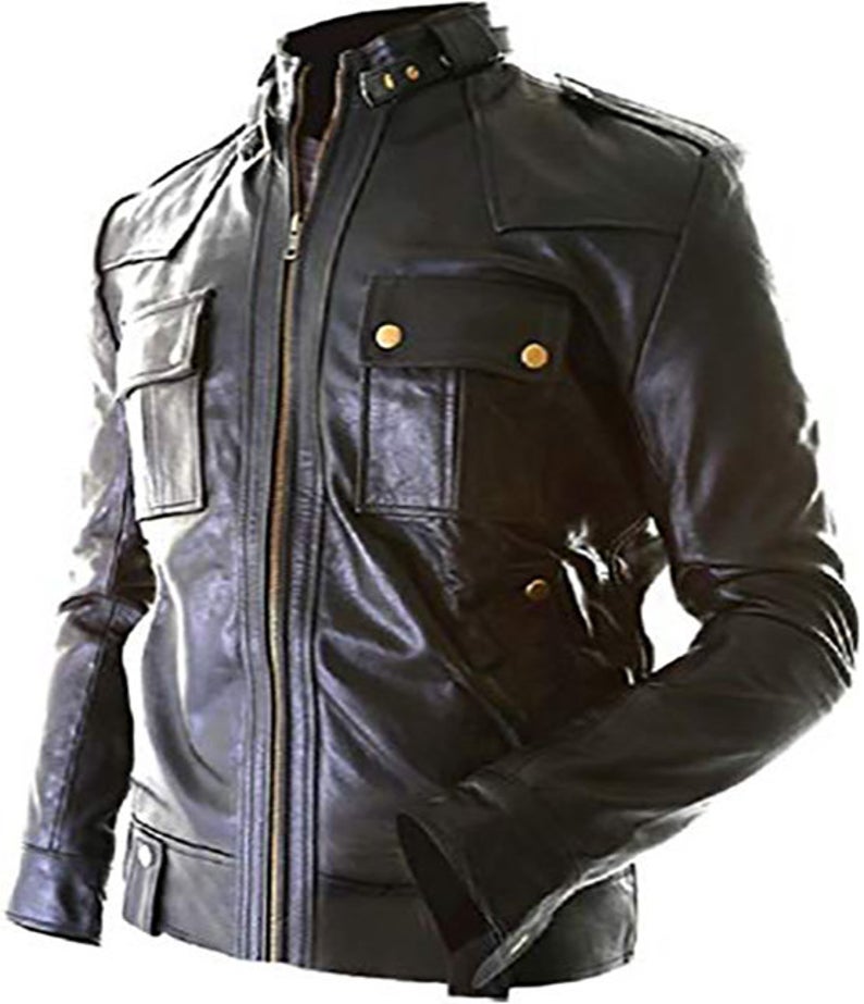 Mens Vintage Biker Cafe Racer Motorcycle Leather Jacket