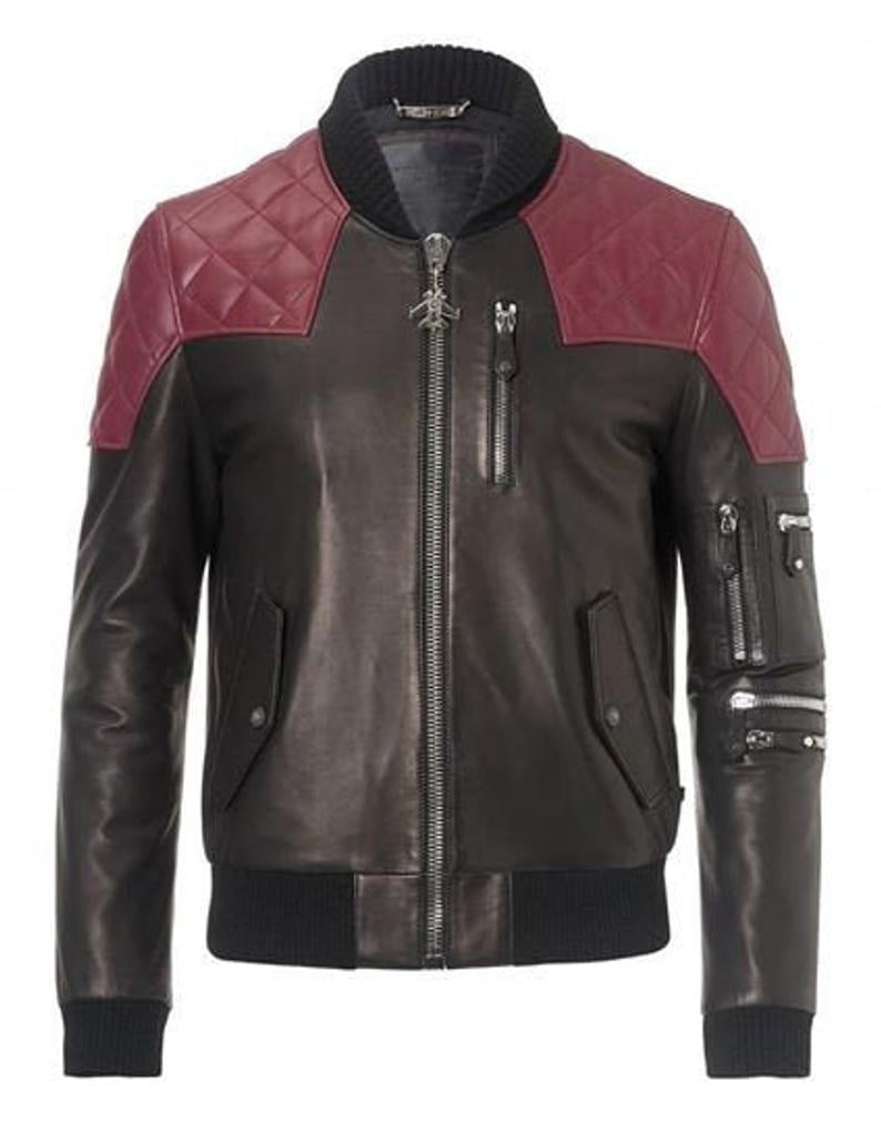 Men's Black Biker Motorbike Bomber Stylish Leather Jacket with strong Metallic Zips