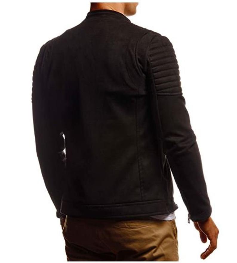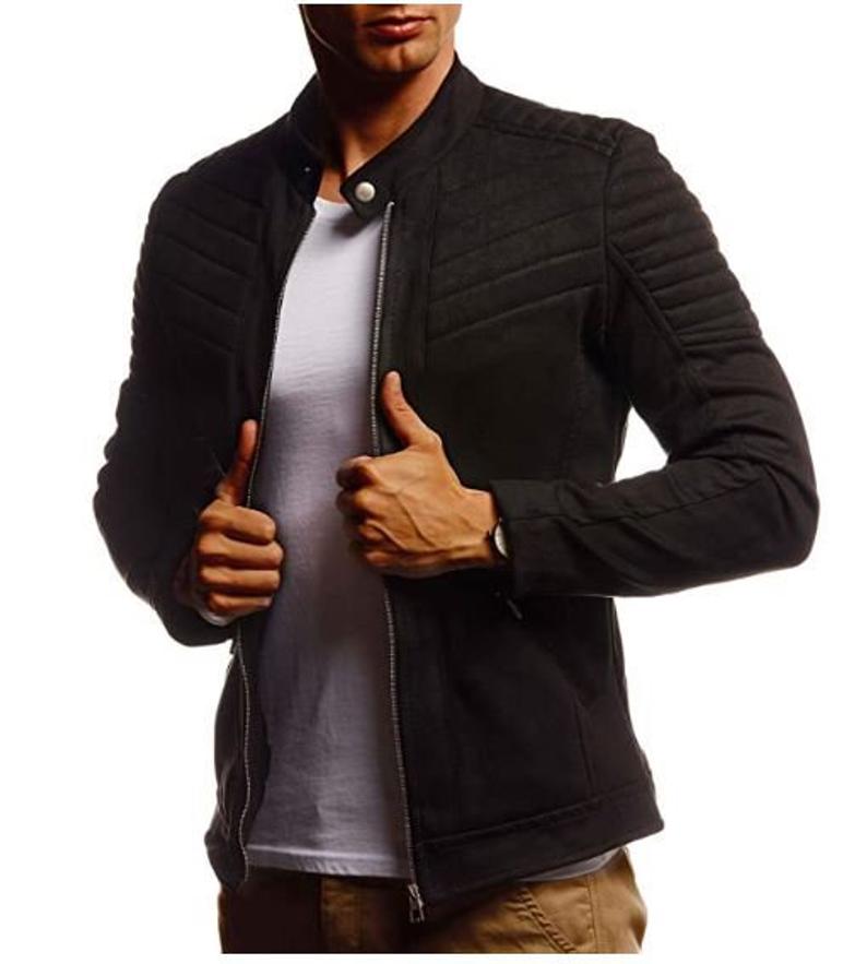 Men's Black Biker casual quilted transition summer velvet stand-up collar faux leather jacket