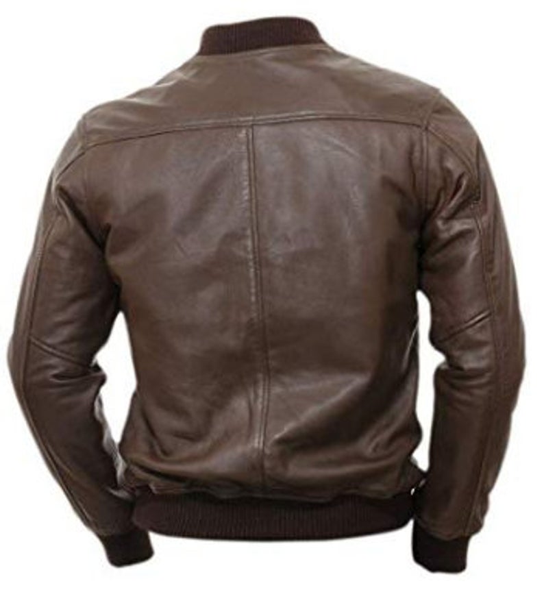 Varsity Bomber Leather Jacket for Men Genuine Lambskin Baseball Flight Jacket Brown