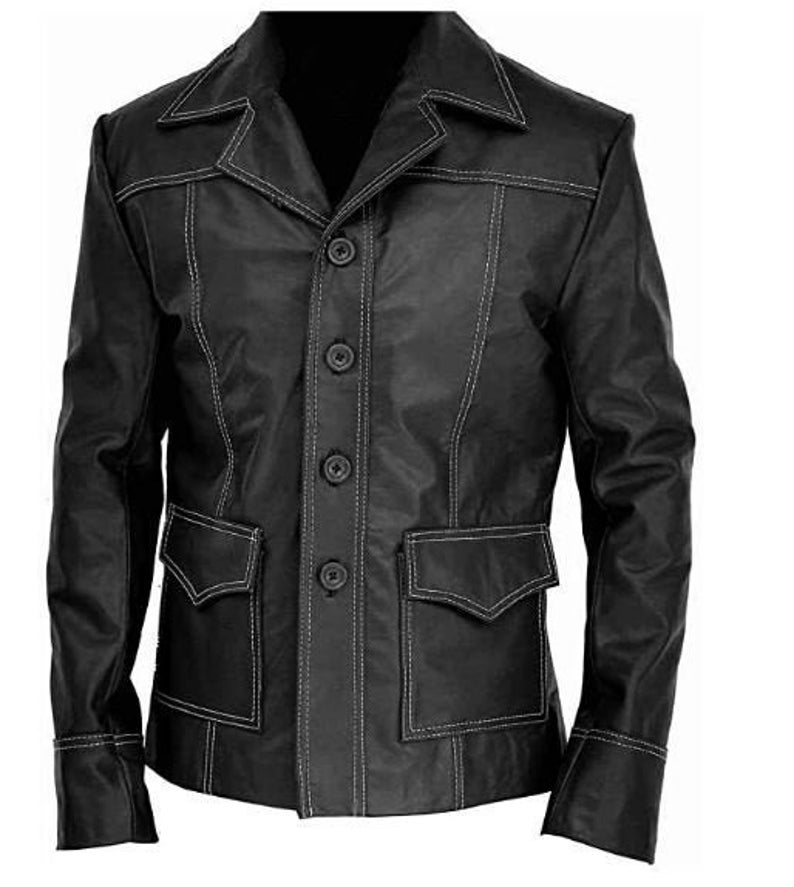Men's Black Fight Club Movie Lambskin Leather Jacket Replica with 100% Polyester lining