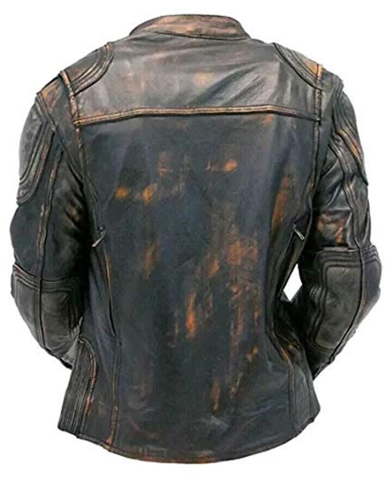 Imported Cafe Racer Quilted Distressed Vintage Motorcycle Leather Jacket Adjustable Sleeves