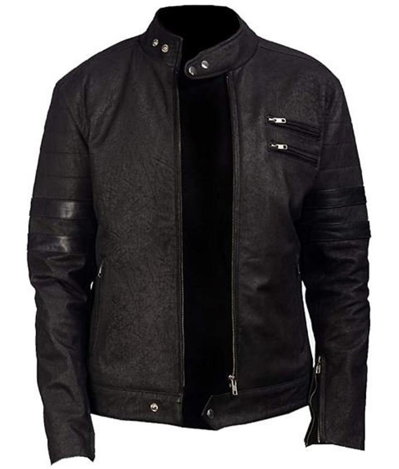 Men's Black Biker Stribe Snuff Lambksin Leather Jacket with 100% Polyester lining for motorcycle guys
