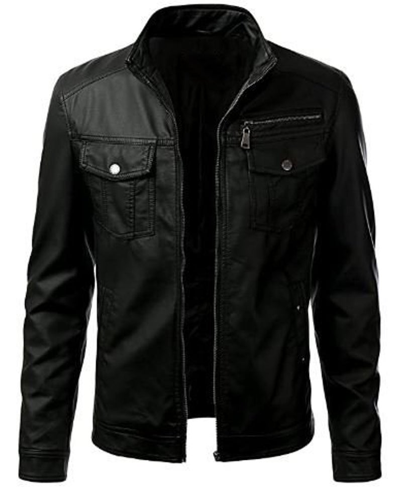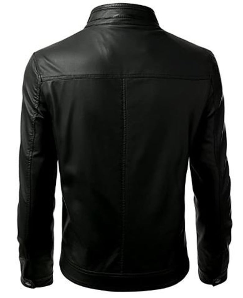 Men's Black Biker Moto Shirt-Look Classic Faux PU Leather Jacket with 100% Polyester lining