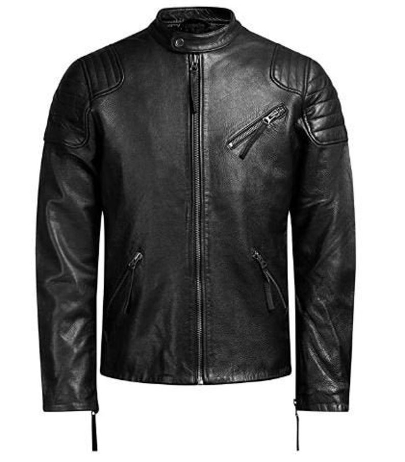 Men's Black Biker Moto Motorcycle Faux Leather Jacket with 100% Polyester lining