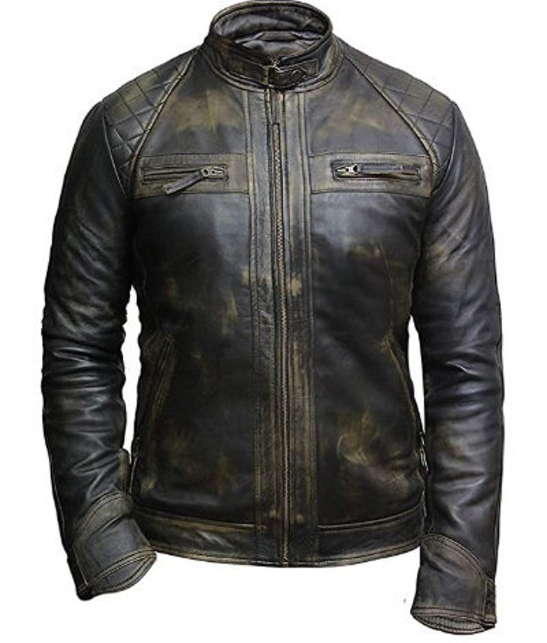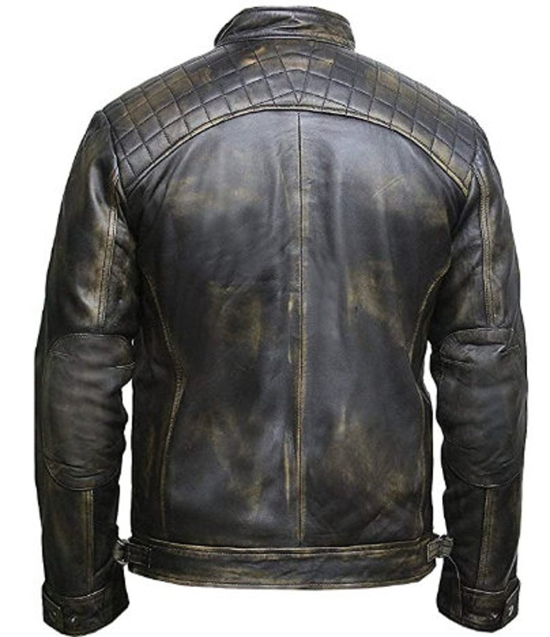 Men's Black Rebond Rub Off Vintage Trend for Men Real Leather Jacket with 100% Polyester lining