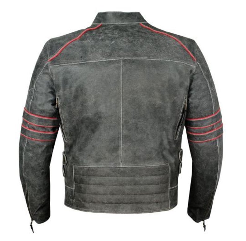 Men's Moto Biker Racing Motorcycle Vintage Distressed Armor Leather Jacket YKK Metal Zippers