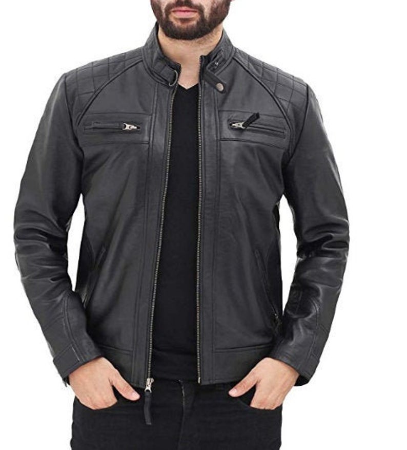 Biker Motorcyle Genuine Lambskin Distressed Black Leather Jackets for Men