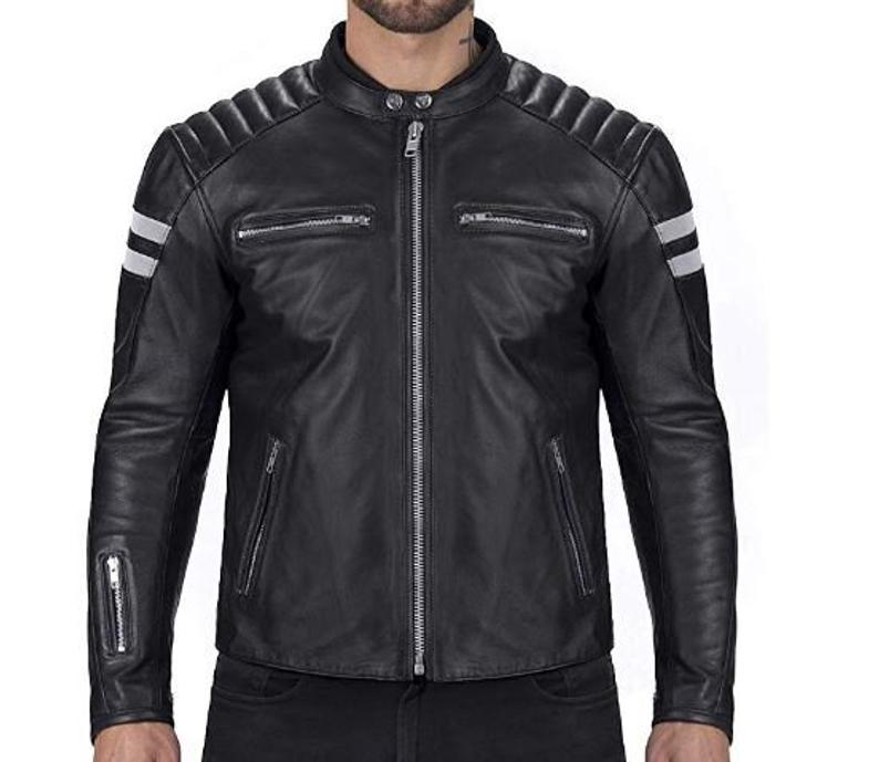 Motorcycle Rider Leather Jacket for Men Biker Bloodaxe Armor Protection Multi Pocket Comfortable