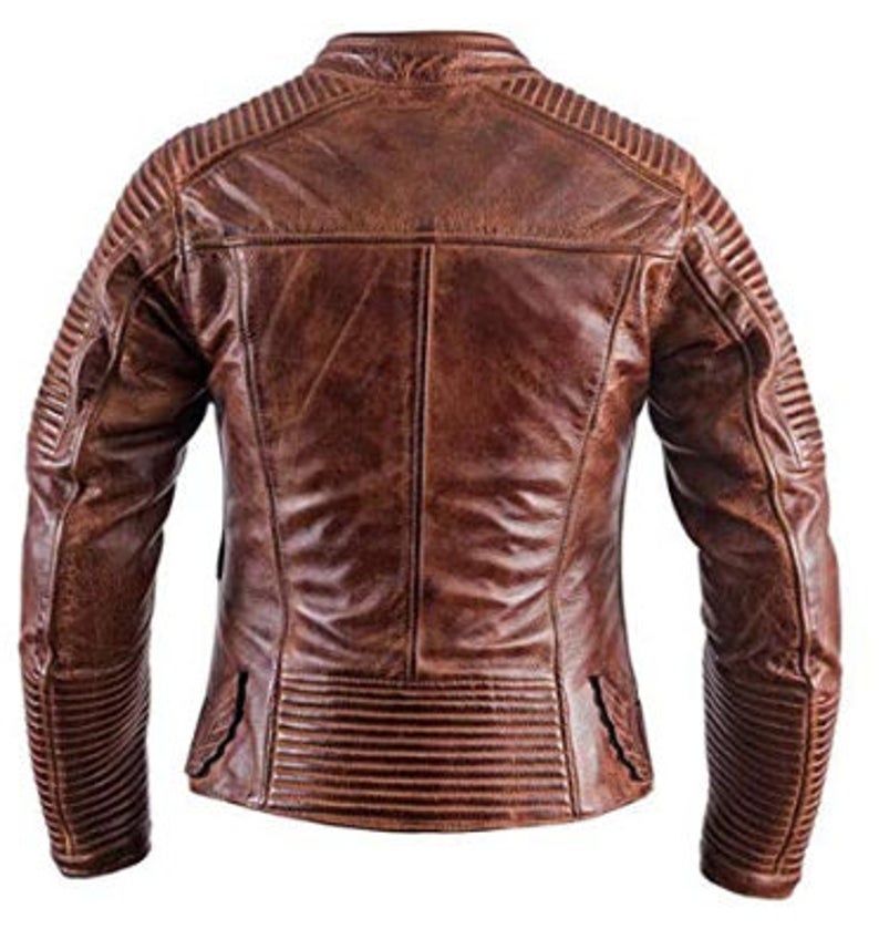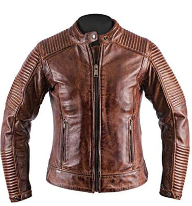 Men Biker Vintage Motorcycle Distressed Brown Cafe Racer Leather Jacket