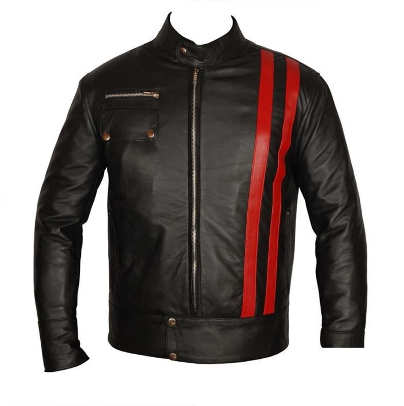 Mens Black Motorcycle Biker Fashionable Moto Faux Leather jacket with Red lining