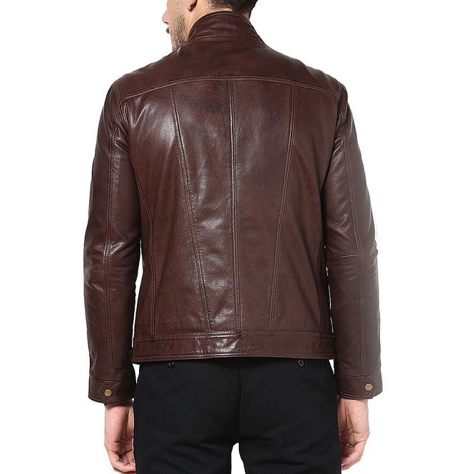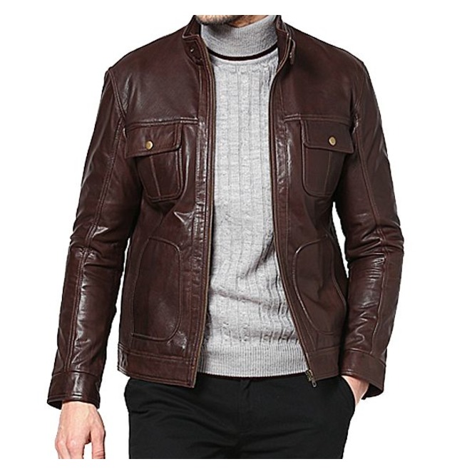 Men Dark Brown Multi Pockets Leather Jacket, Motorcycle Brown Jacket