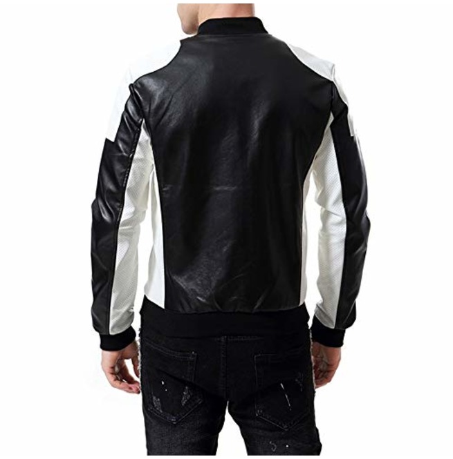 Mens Two Tone Biker Leather Jacket, Mens Leather Rib Collar Fashion Jacket