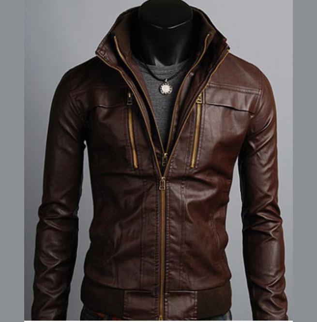 Men's Leather Jackets Korean Style Casual Slim Fit Biker Leather Jacket