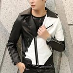 Handmade Men Two Tone Biker Leather Jacket Black And White Biker Jacket