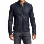 Men Navy Blue Biker Jacket, Men’s Leather Jacket, Blue Leather Jackets