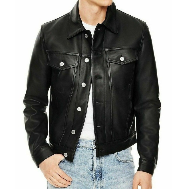 New Men Black Leather Biker Jackets, Real Leather Button Closure Jackets