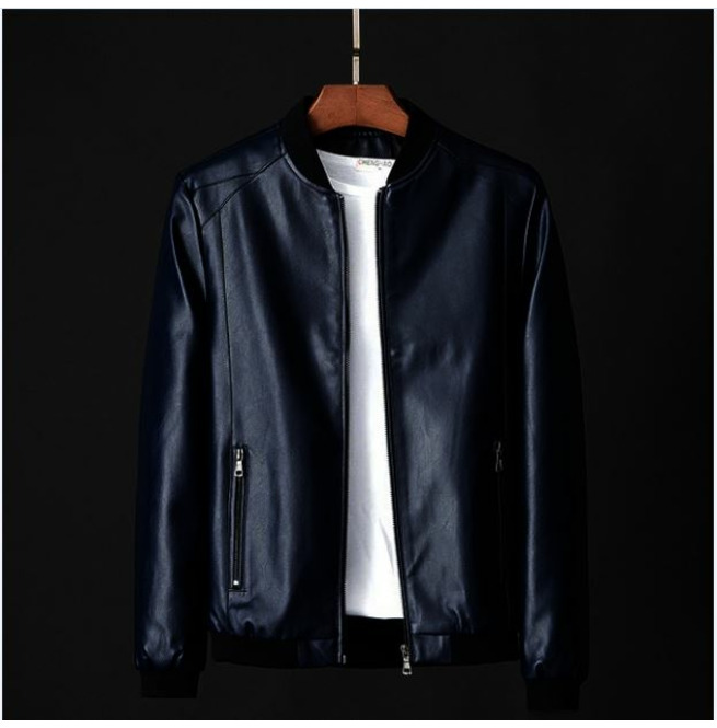 Men Blue Baseball Bomber Leather Jacket, Blue Leather Fashion Jacket