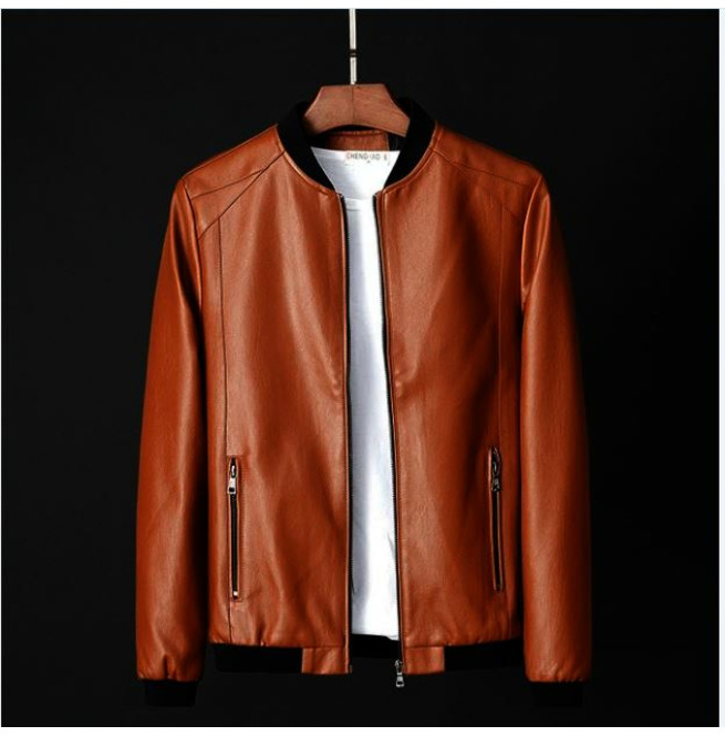 Men Brown Baseball Bomber Leather Jacket, Brown Leather Fashion Jackets