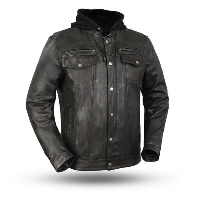 Black Leather Jacket With Hoodie, Men Winter Fashion Leather Jacket