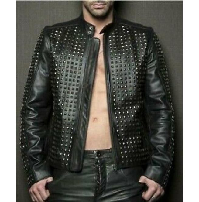 Rockers Black Jacket Real Soft Studded Premium Leather Jacket for Men