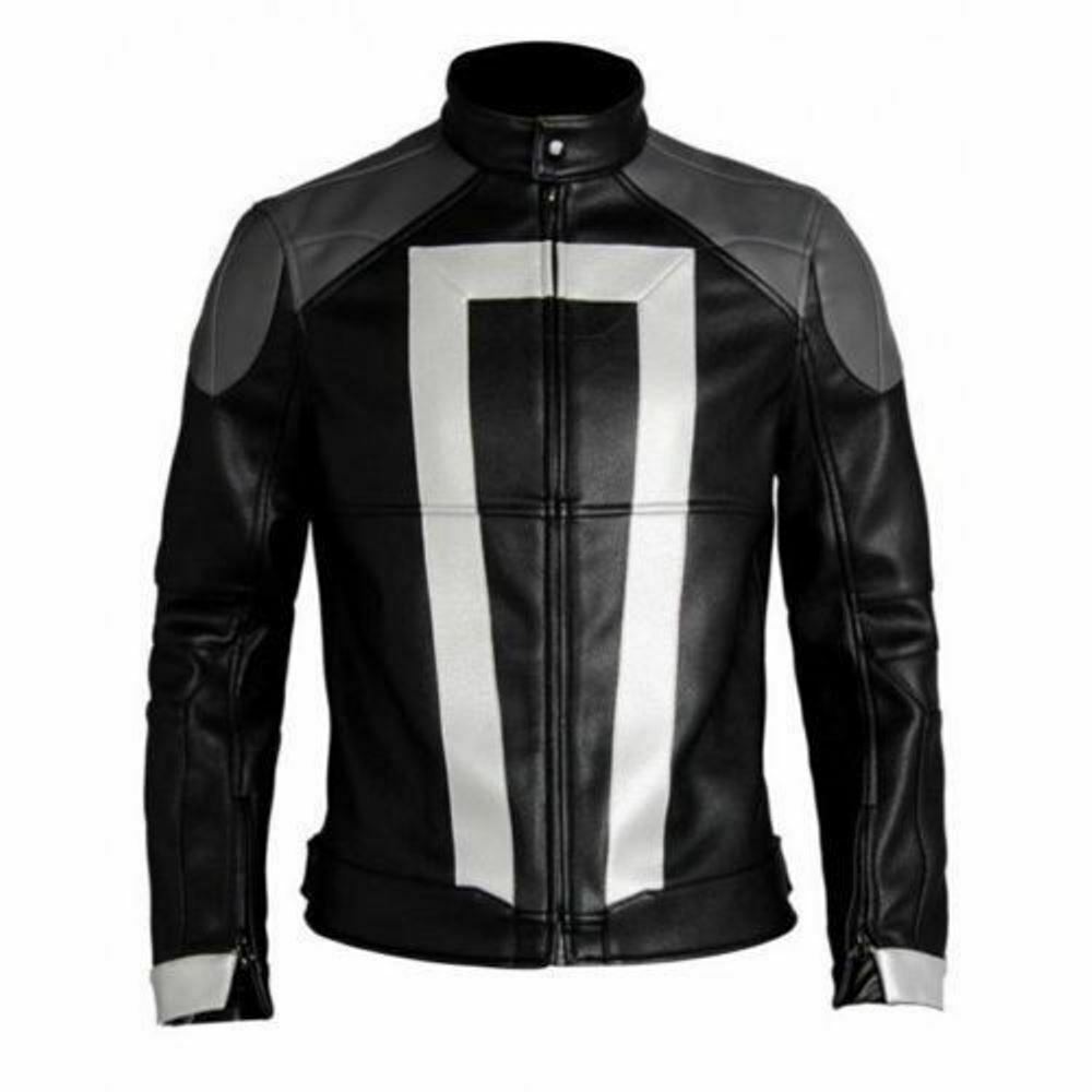 MEN'S BLACK COWHIDE LEATHER GHOST RIDER JACKET AGENTS OF SHIELD SEASON 4 ROBBIE REYES