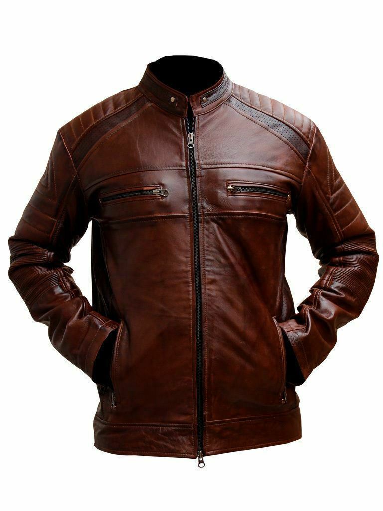 MENS REAL GENUINE LEATHER BIKER JACKET RACER VINTAGE STYLE BROWN FASHION LEATHER JACKET