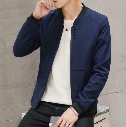 New Men's Navy Blue Leather Hand-Stitched Slim Fit collar Stylish Real Cowhide Leather Fashion Jacket