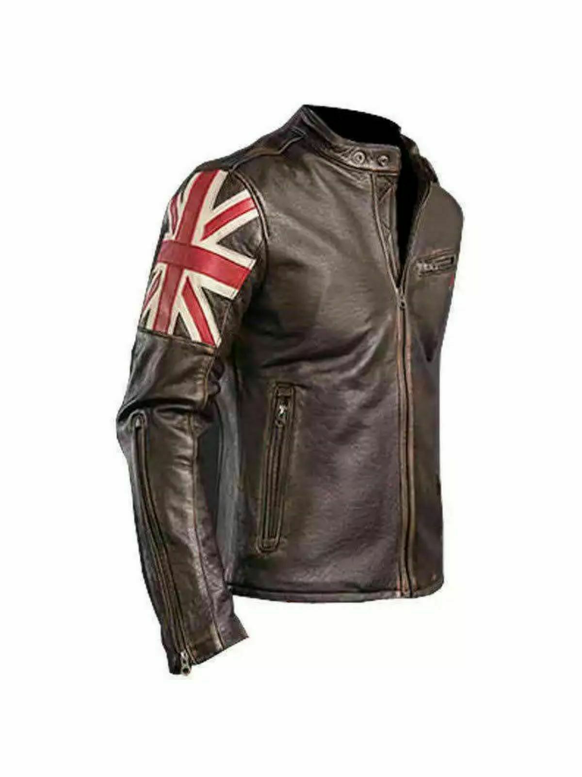 New Men's Custom Made Biker Vintage Distressed Brown Union Jack Cafe Racer Cowhide Leather Jacket