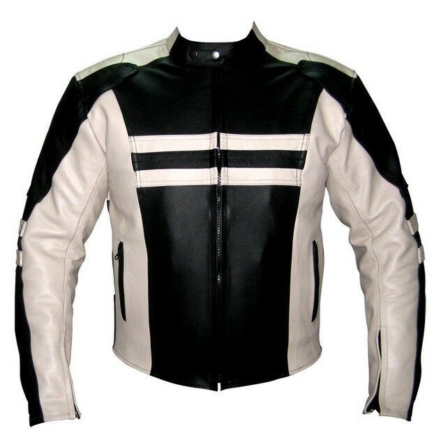 New Customize Men's Black & White Contrast Biker Genuine Leather Stylish Fashion Jacket