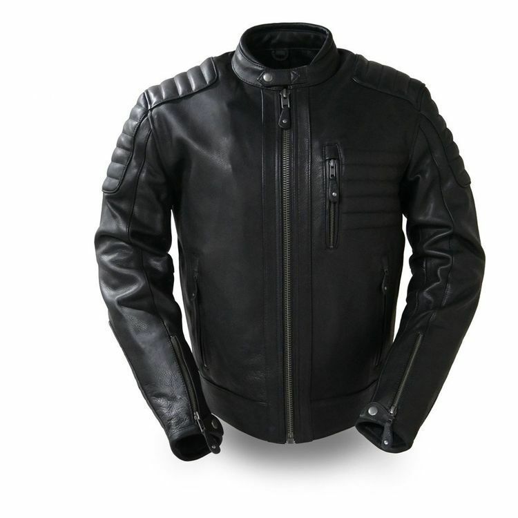 Men's Custom Made Black Leather Motorbike Front Zipper Sleeves Zipped Real Leather Safety Pads jacket