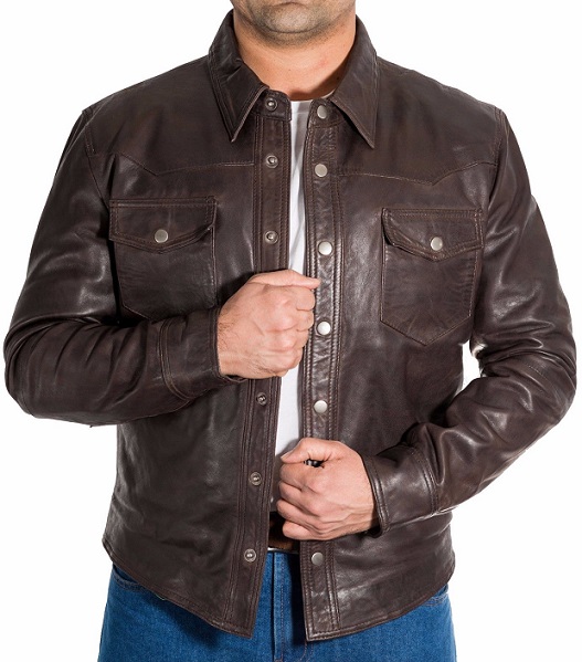 New Men's Handmade Brown Leather Front Button Stylish Fashion Biker Leather Jackets