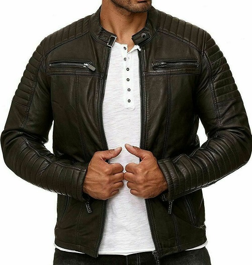 New Men's Handmade Black Leather Stylish Zipper Bomber Fashion Biker Leather Jackets