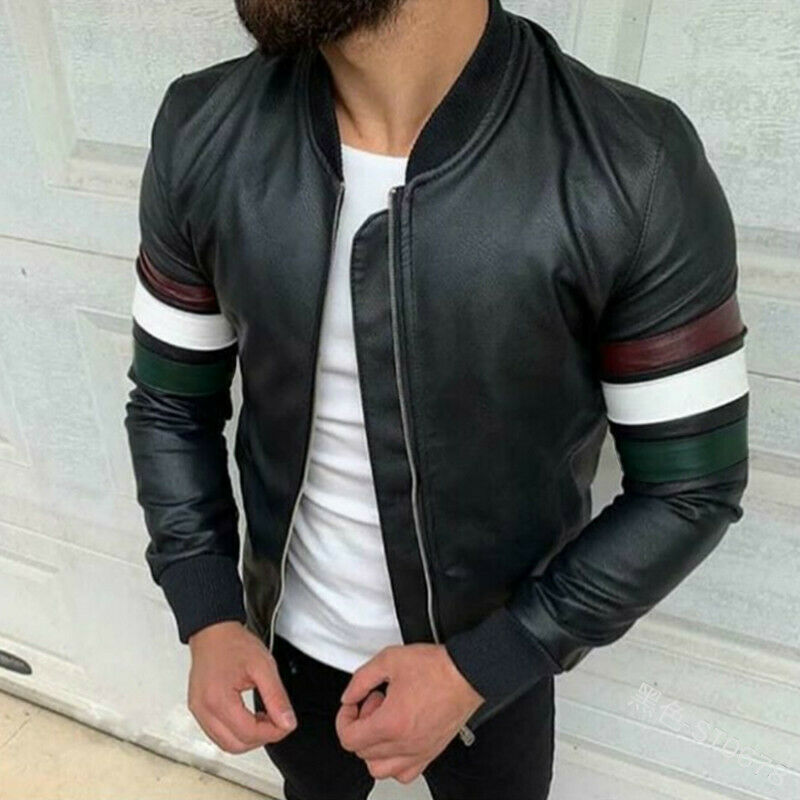 Men's New Handmade Leather Jackets Black Leather Bomber Front Zipper Fashion Real Cowhide Leather Biker Jackets