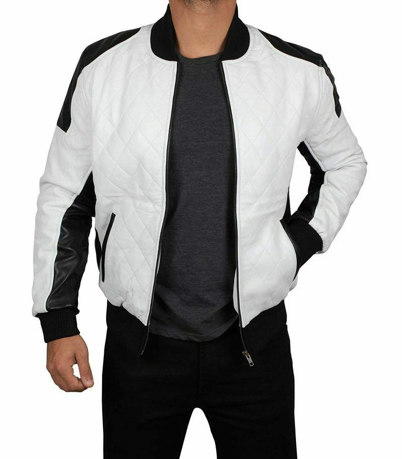 Men's New Custom made White & Black Leather Zipper Style Biker Leather Jacket