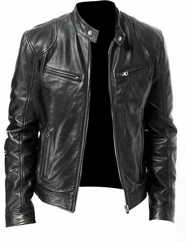 New Men's Custom Made Black Leather Bomber Style Front Zipper Real Cowhide Leather Biker Jackets