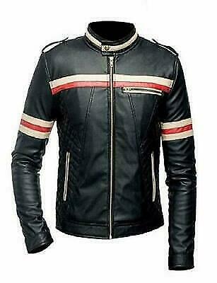 New Men's Handmade Black Leather With Multi Color Strips Fashion Zipper Style Biker Leather Jacket
