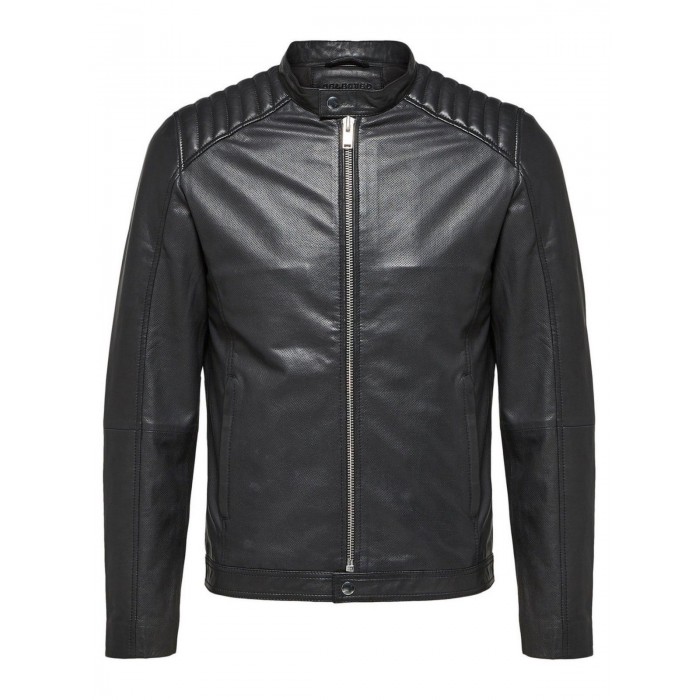 Men's New Custom Made Black Leather Bomber Zipper Style Real Cowhide Leather Biker Jacket