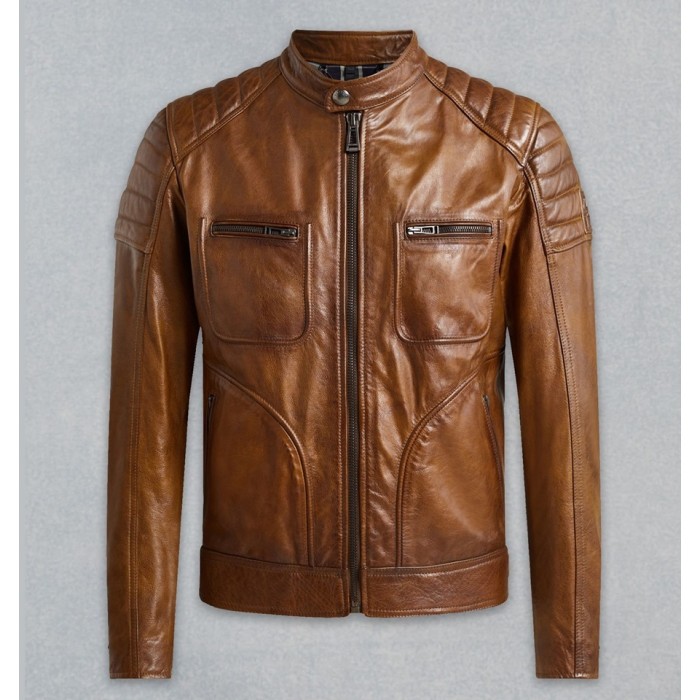 Men's New Custom Made Tan Brown Leather Bomber Zipper Style Real Cowhide Leather Biker Jacket