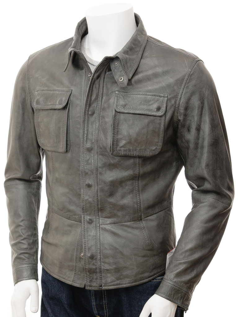 Men's New Handmade Stunning Grey Quilted Biker Goat Leather Jacket