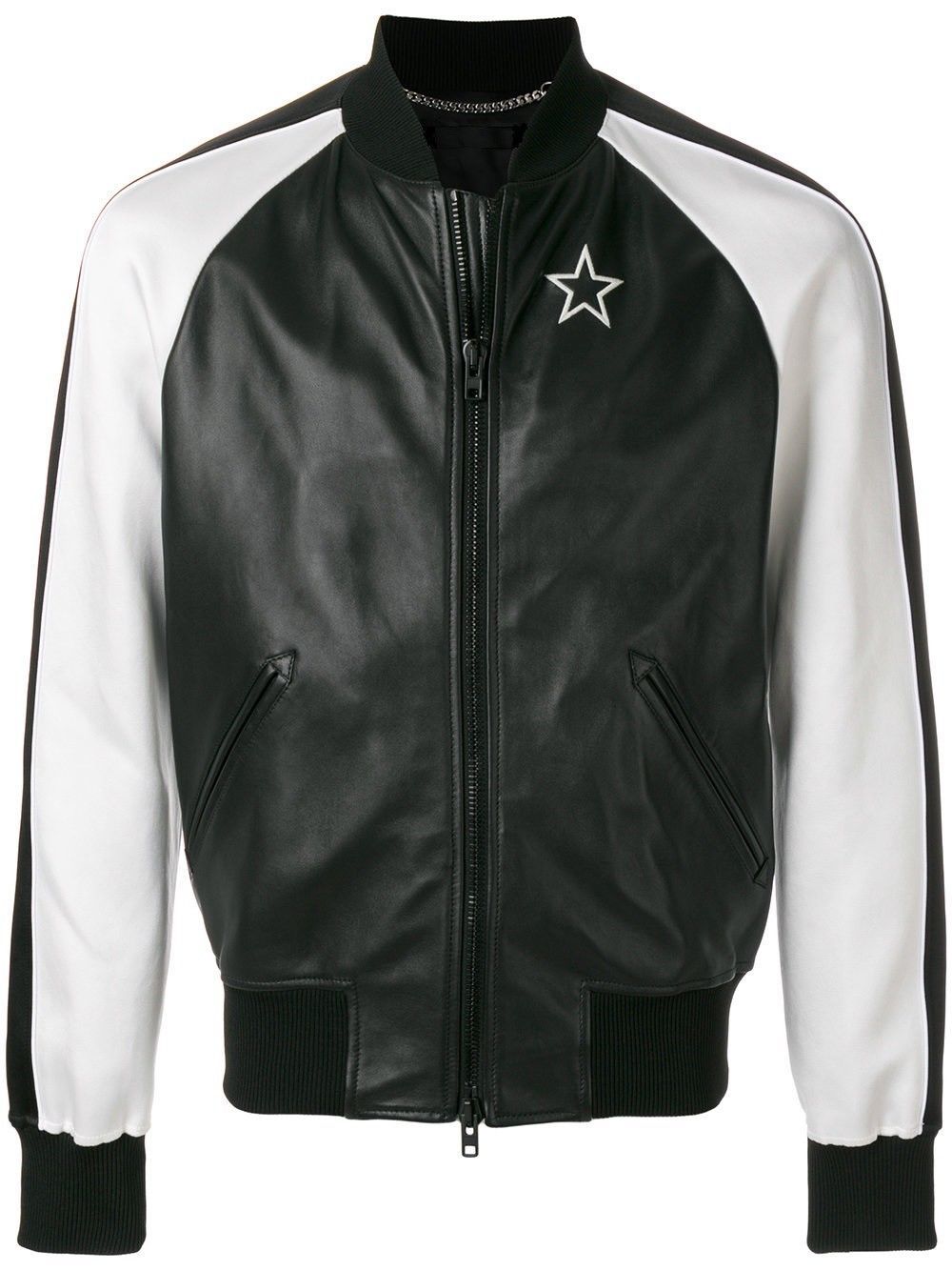 Men's New Handmade Black & White Bomber Sheep Leather Biker Style Jacket