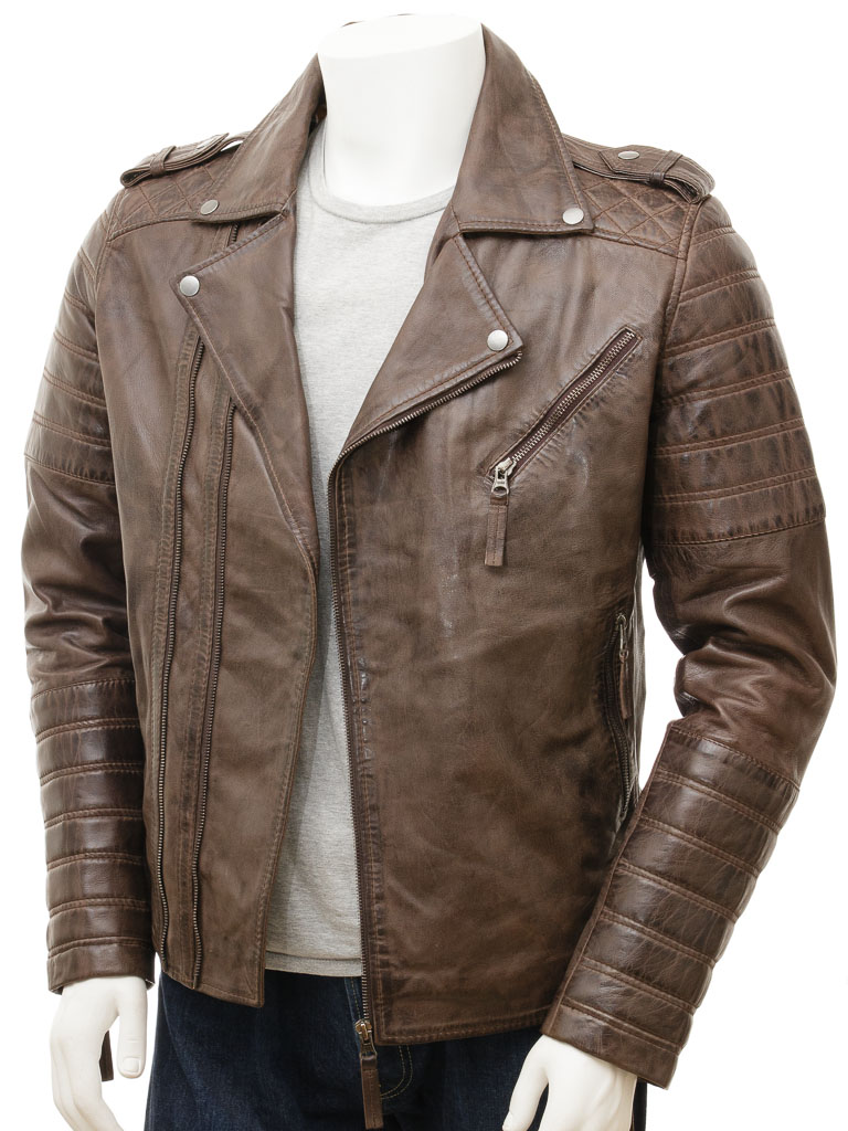 Men's New Handmade Super Twin Zips Brown Biker Sheep Aniline Leather Jacket