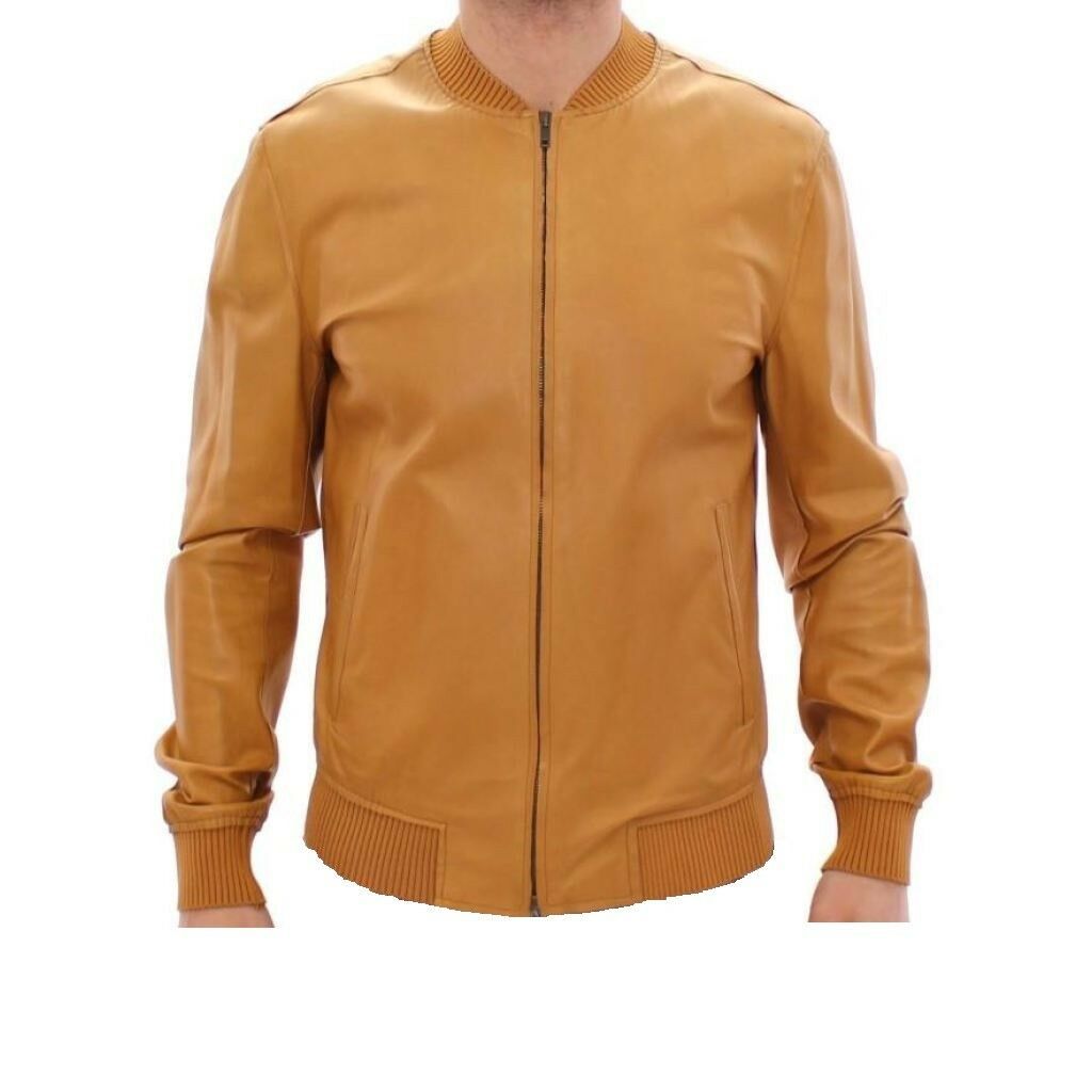 Men's New Handmade Super Latest Fashion Tan Goat Leather Bomber Biker Jacket