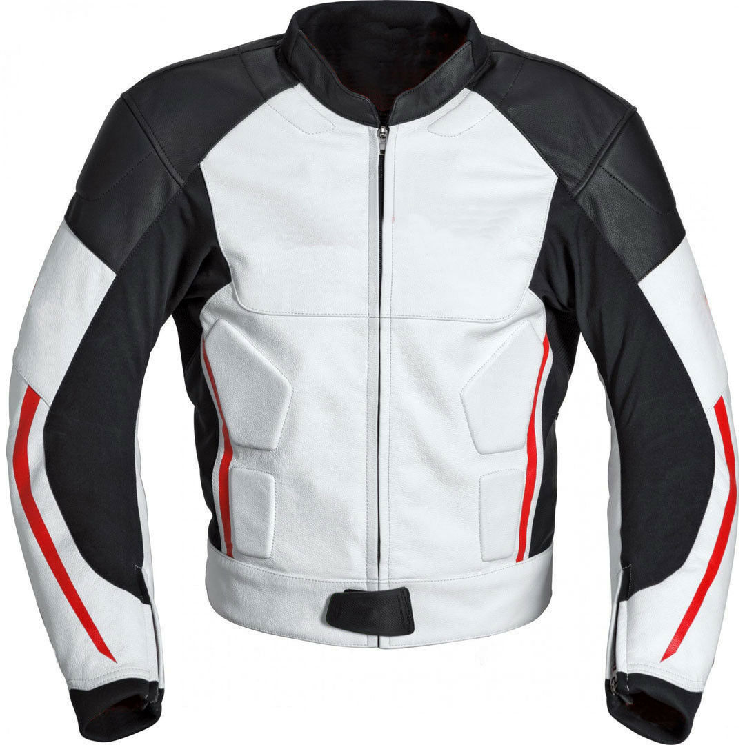 Moto GP Black & White Men Biker Sports Racing Motorcycle Leather Leder Jacket
