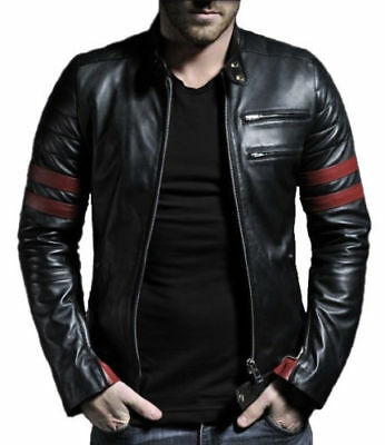 New Mens Handmade Jackets Leather Collar Style Fashion & Motorcycle Zipper Jacket